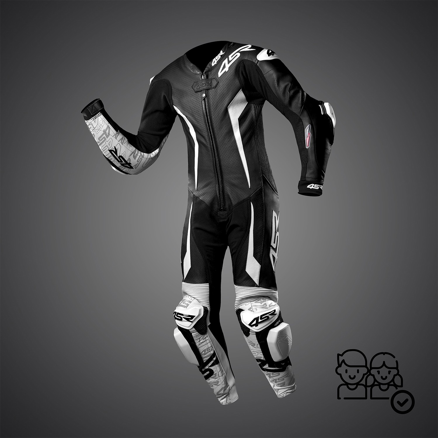 Dzięki jednoczęściowemu dziecięcemu kombinezonowi 4SR przygotujesz się na tor w kilka minut. Jeśli chcesz wzbogacić kombinezon o własne skórzane logo, 4SR BADGING SERVICE jest do twojej dyspozycji!